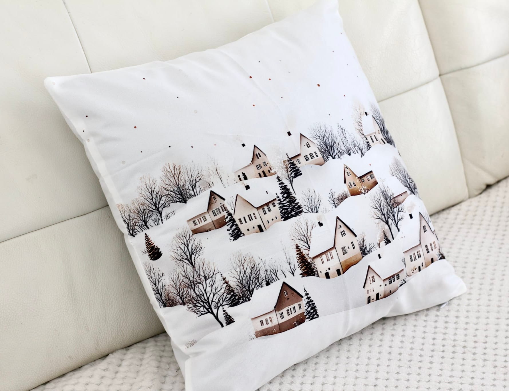1 kus Dekorativní polštářový povlak s motivem zimní krajinky a domečky .