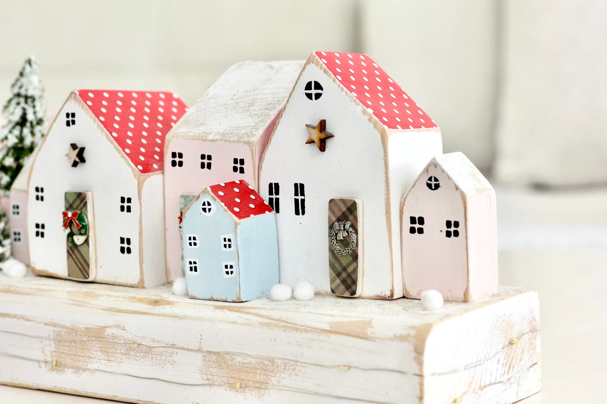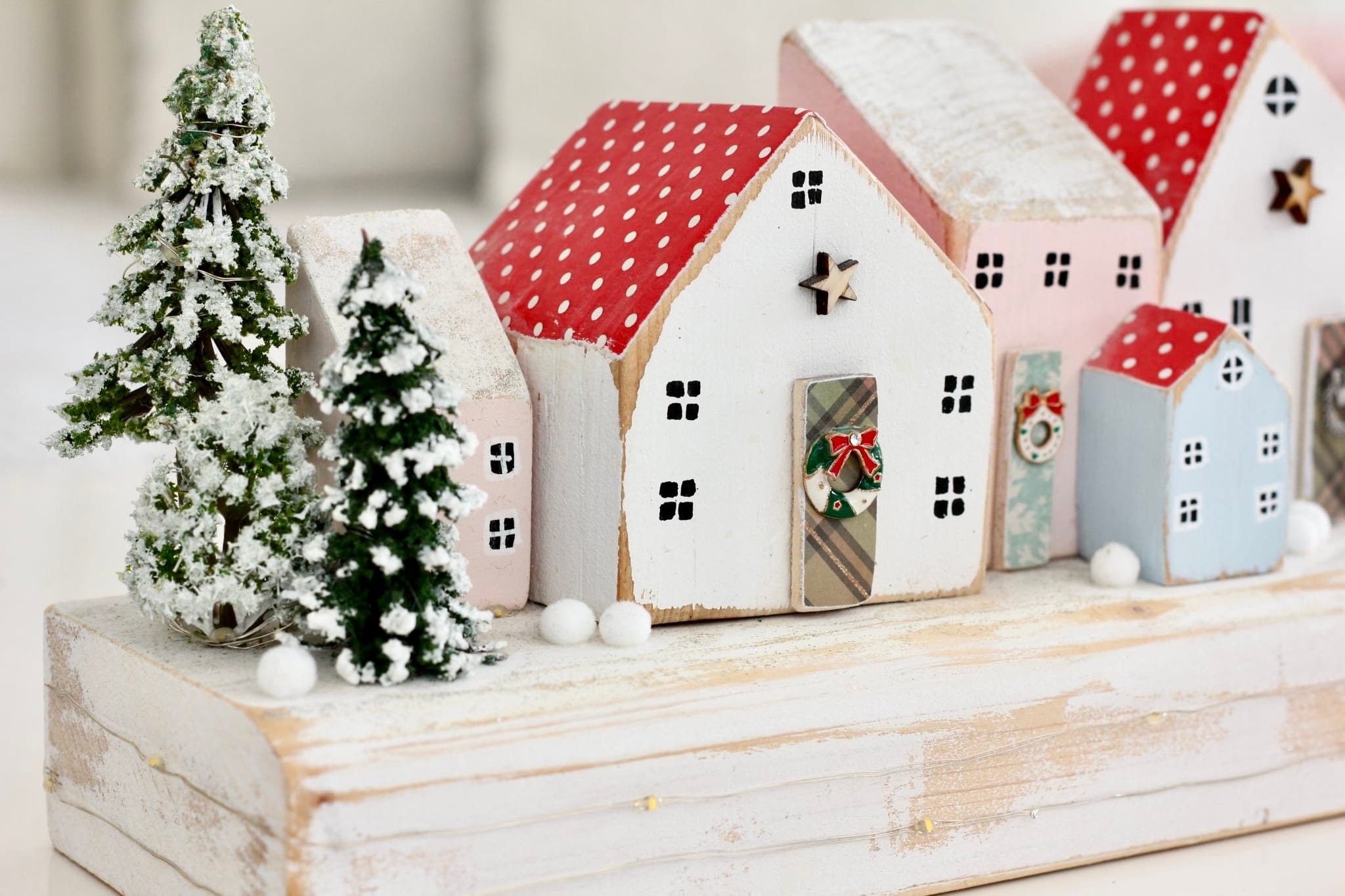 Dřevěná zimní vesnička – vánoční dekorace.
